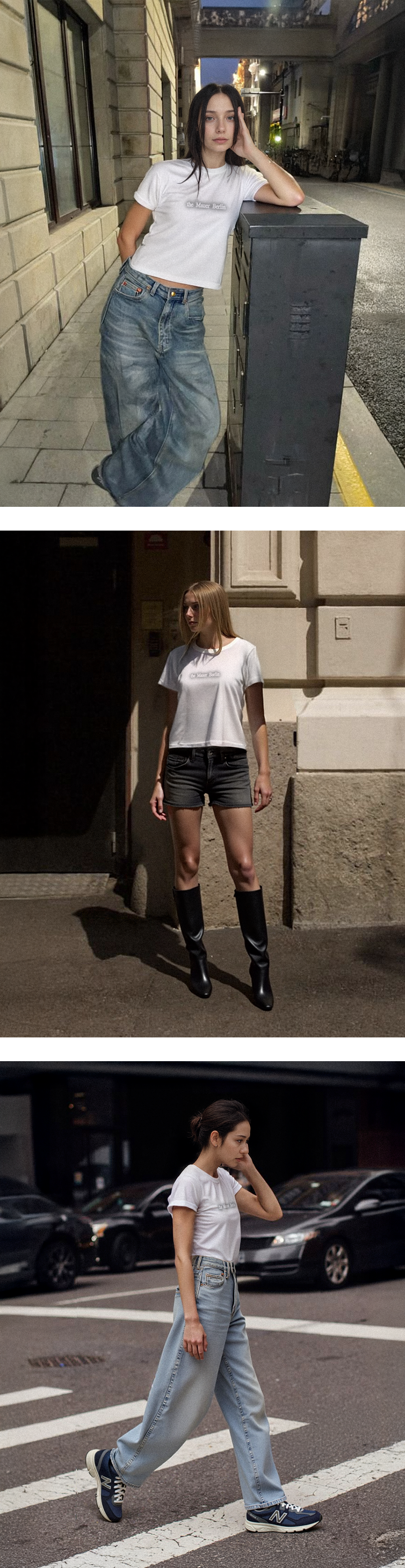 | 베이직 하면서도 그라데이션 그래픽 프린트로 포인트를 준 크롭 티셔츠로 데일리한 아웃핏이 연출되는 아이템입니다. |